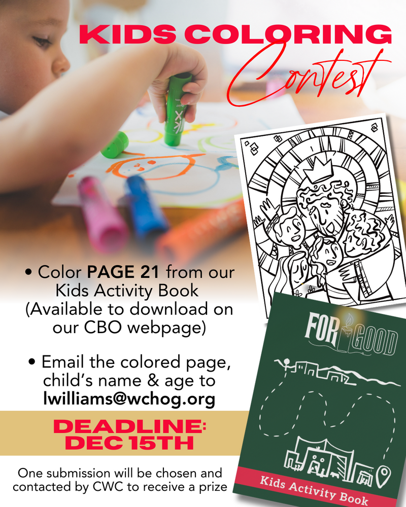 •Have your kids color the page and then share their artwork , name and age with us by emailing it to lwilliams@wchog.org.